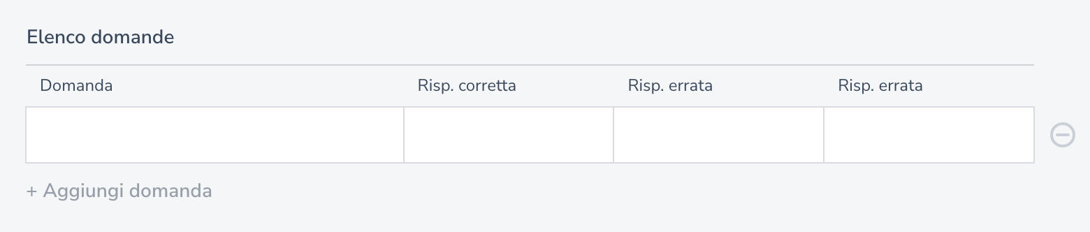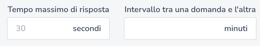 * In aggiunta a questa opzione, puoi decidere il tempo massimo entro cui l’utente dovrà rispondere e un intervallo di tempo tra la proposizione di un quesito e l’altro.&#x20;